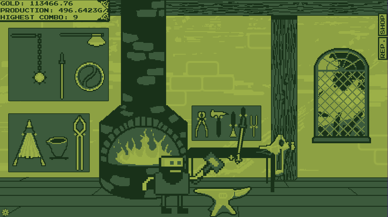 Welcome to Idle Forge! A browser idle game where you're a fantasy blacksmith making weapons for adventurers! Click on your weapon to forge it and make money, upgrading your tools and even helping sponsor adventurers with your weapons for their missions! (Game is early and much is subject to change.) Make sure to set your monitor refresh rate in the settings or else you may encounter some physics weirdness. Also, due to the nature of Godot 3 in HTML5 and web browsers, the game will be frozen when another tab in the same window is focused. To prevent this, you will have to open the game in its own browser window, which will remain unpaused even when unfocused. Or, you can play the downloadable version (windows only for now).